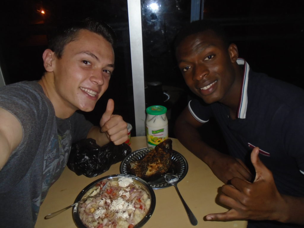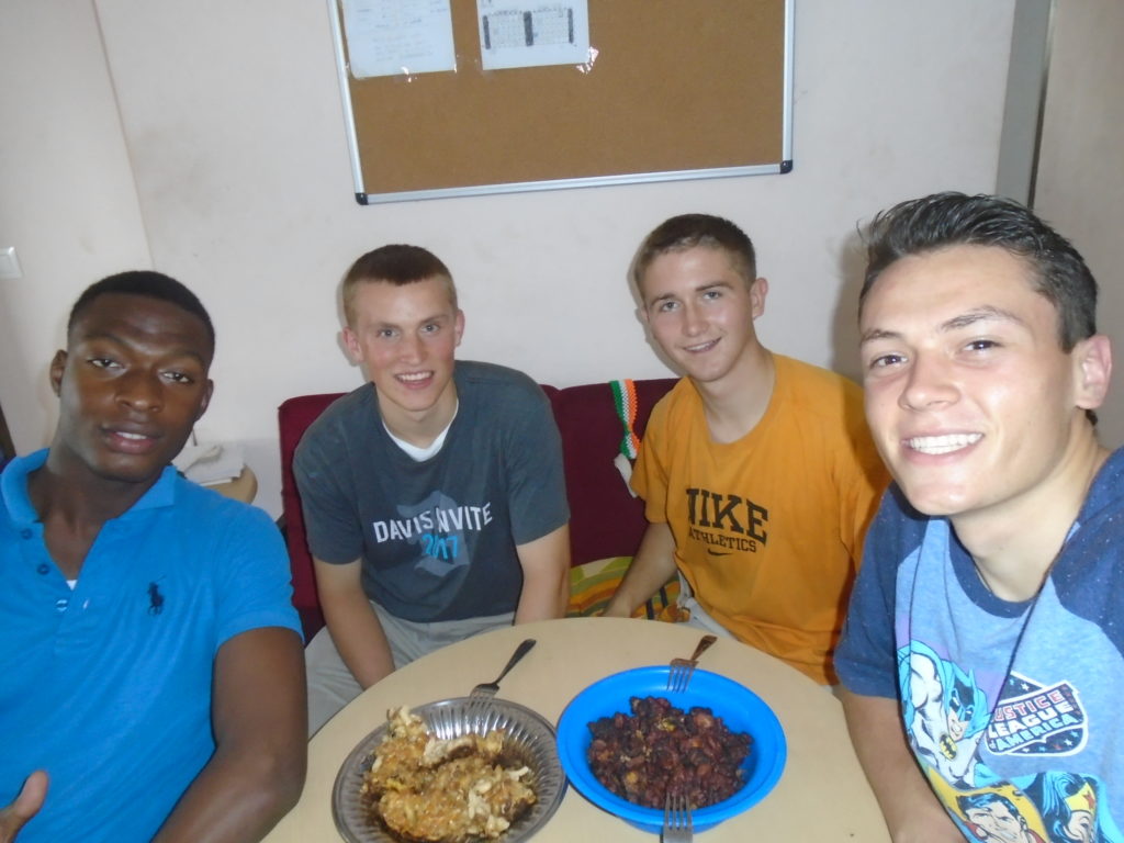 We had a little feast my comp made this famous haitian dish that was soooo goood! elder briggs and his comp came over to try it tooo it was a party!! that is us with fr bahi the most zealous person ever he goes to secteur with us like all the time!!!!