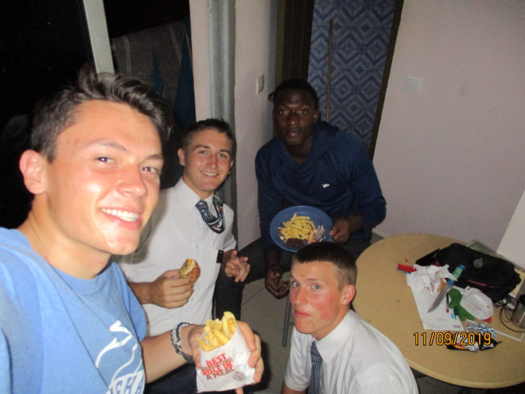 I know how crazy that time is flying!!! My week was soooo awesome we had so much success this week and just the Lord was so amazing to us!!! He seriously is always there no matter what!!! The splits with the assistants was awesome!!! Elder Cannon and I worked together and he seriously helped us so much we found so many investigators and he really just gave me the desire to really want to work hard!! Given I got a bad cold after I didnt care cuz the Lord totally healed me in a heart beast time because my comp gave me a blessing and it was seriously amazing how fast the Lord’s hand healed me so the I could keep working hard!!!! No question my body is just so tired as I come to the end of my mission but I see the Lord giving me strength every day!!!! We set a baptismal date for one of our investigators he will be baptised in two weeks time so that will be awesome!! and then we are praying that fr ninssémons kids come back so that he can baptise them I seriously can’t wait for that day!!!! It will be amazing!!!! Sadly family doué the family we have been working so hard on said they dont want us coming back to visit them and they she will come to church with the kids when they are ready we told fr doué to keep the courage and that one day she will come to it I then showed him how far she has come and that he needs to just be patient and let the lord do his work and just try his best to be the best example for his kids! we had a great talk as sad as it was we ended on a good note! we just gotta keep going and keep searching there was this one member we ran into when i was on the split that seriously i know is a blessing sent from heaven he is going to help us work so hard and teach so many families here seriously i will explain to you on video chat it was so awesome!!!! so yeah super great week hahaha then sunday we had lots of old investigators return to church like seriously everyone is just coming out of nowhere because we have kept fighting and kept pushing!!!!!! i got that finish line in my sights and it is like that just 800 meter sprint at the end to the finish gosh i gotta get back into running when i get home hahahahah i seriously miss it sooo much!!!!!!! i think about it sooo much and just how great it was for me hahahaha sorry super random hahahaha lol well i love you tons have a great week!!!!!
