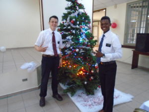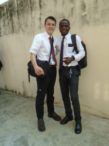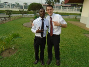 Last week was soooooooo much better!!! I had an amazing experience yesterday. Saturday we had our first baptism!! It was amazing. I committed both of them to baptism, and they were baptizedI I talk about it in my recording. I read everyone’s emails. Thank you for all of them! You guys are awesome!!!! I can feel everyone’s love! I got so many emails! It was wonderful! It’s been an amazing week! I’ve been writing in my journal a ton. I write like I’m writing to my children. I’m probably going to run out of paper before the two years are up! I’m going to get the packages you sent at the multi-zone conference in a couple of weeks. Yeah I took your advice and just chilled out and it has seemed to help. Elder Ayama told me something that is so true, “just play the fool to win the war”, which basically means suffer through the crap till your out of training then you can do whatever you want. We’ll be together until the next batch of missionaries come at the end of the month. I’ve come to realize so much this past week with the spirit as my trainer! He’s the real teacher! Satan has been trying to get to me, but he got a giant curb stomp yesterday! 😉 So I have no clue why my comp has been better this week. I think I got him in a good place right now, but even the smallest things tip him off, so like I want to say I’ll be able to email next week but there is also a high possibility of not hearing from me. Haha it just will be in and out! The good thing is I got to fast, so I put my starvation to good use! 🙂 I’m honestly better than you think! The Lord is blessing me! Mom, I have lost a lot of weight, which I thought was impossible…haha! The good news is the Lord is blessing me because I haven’t felt hungry anymore, which is a huge blessing. Alban’s friend called me the other day! He’s gonna come by the apartment. He is an area authority, which is dope! He seems like a stud! I also met Alban’s other friend too that he served with when he was here. It was super cool because we were talking with him and then I asked him if he knew Alban and sure enough he served with him! The Lord is in our lives more so than we can even comprehend! It’s impossible to not see the blessings that keep coming into my life. I’m great. I don’t have any anxiety. Just bursts of homesickness sometime, but I’m doing a lot better!!! The power is sketchy so some nights its super hot others its freezing, but I’m getting more and more sleep as time goes on. It’s all apart of the adaptation! 🙂 I just have to laugh about it. Africa is really funny actually. When I think about how I’m living and what I’m doing I just laugh. 🙂 Hahaha I’ve come to realize that is the key to get my comp happy is to laugh. I just joke with him and even if it is the dumbest thing if he thinks its funny then it is freaking hilarious! I’ve gotten pretty good at fake laughing hahahahaha! These people are really easy to love! I’ve come to find ways to just love them for who they are and they have grown to like me so thats a blessing. It is all the Lord’s hand. He needed me to suffer to know what the good feels like, if that makes sense? The spirit is really helping me learn and grow. You’re awesome, Dad! I love you so much!!!!! I tell people stories about your mission and just your awesome example in general like all the time! I have also grown to love the Savior so much and have gained so much respect for him!! Read Jesus the Christ!!!! It is amazing! Well, this place is amazing…it’s the comps that have made it terrible. LOL I just have such a lazy comp. Oh well, I have a ton of time to learn French and study!