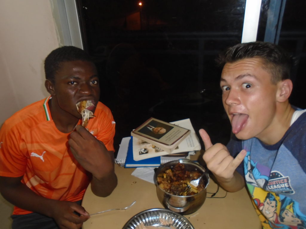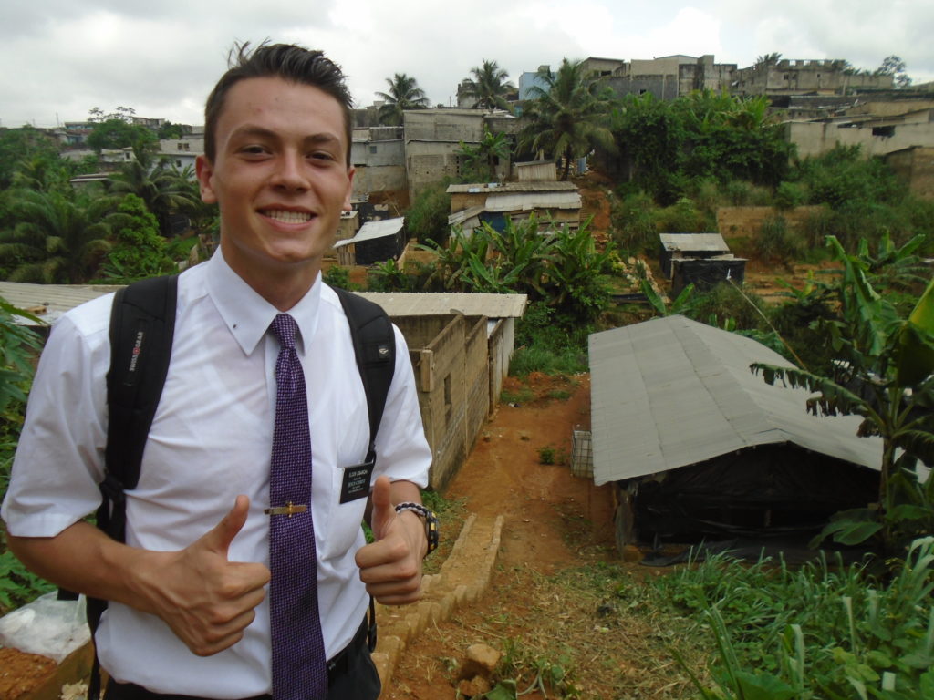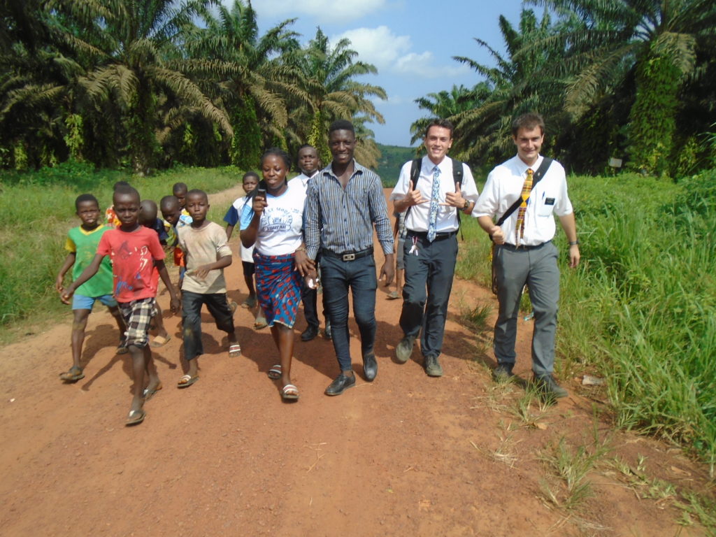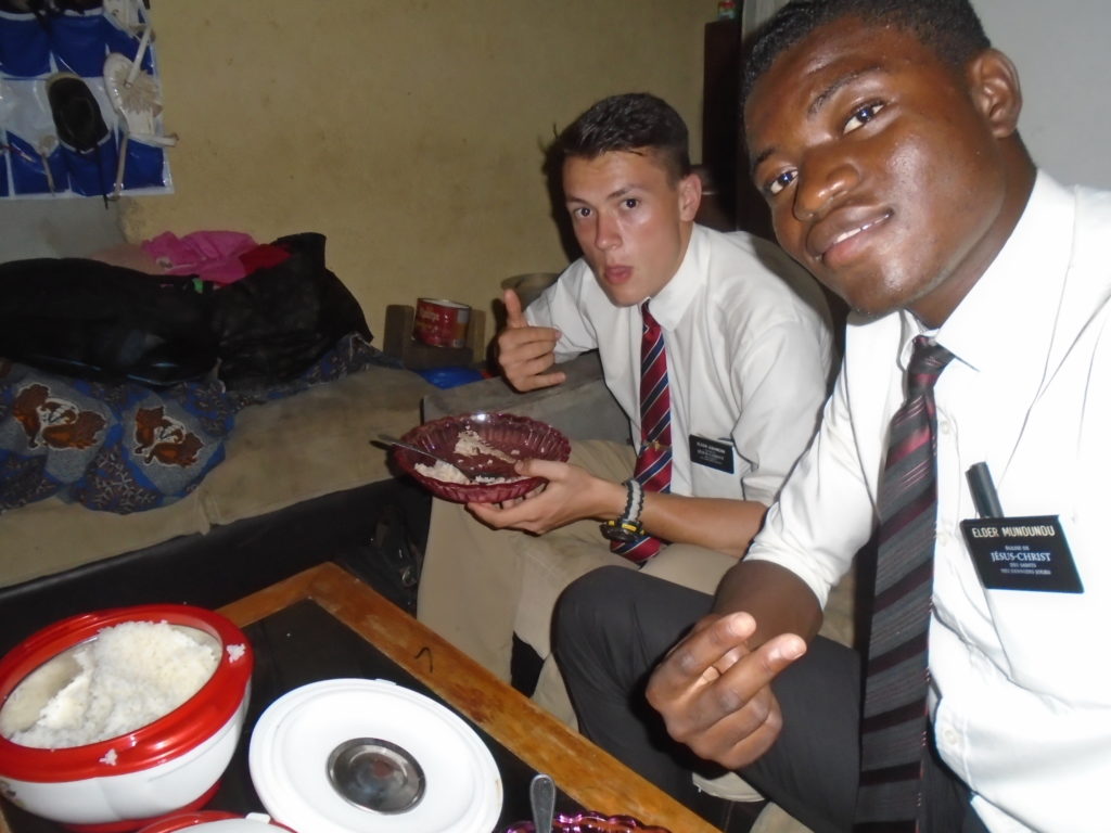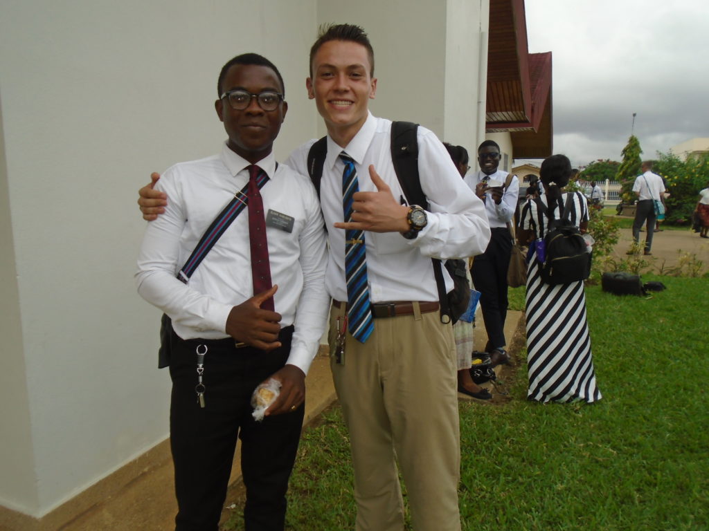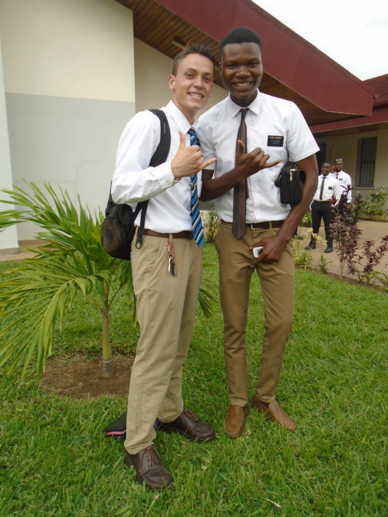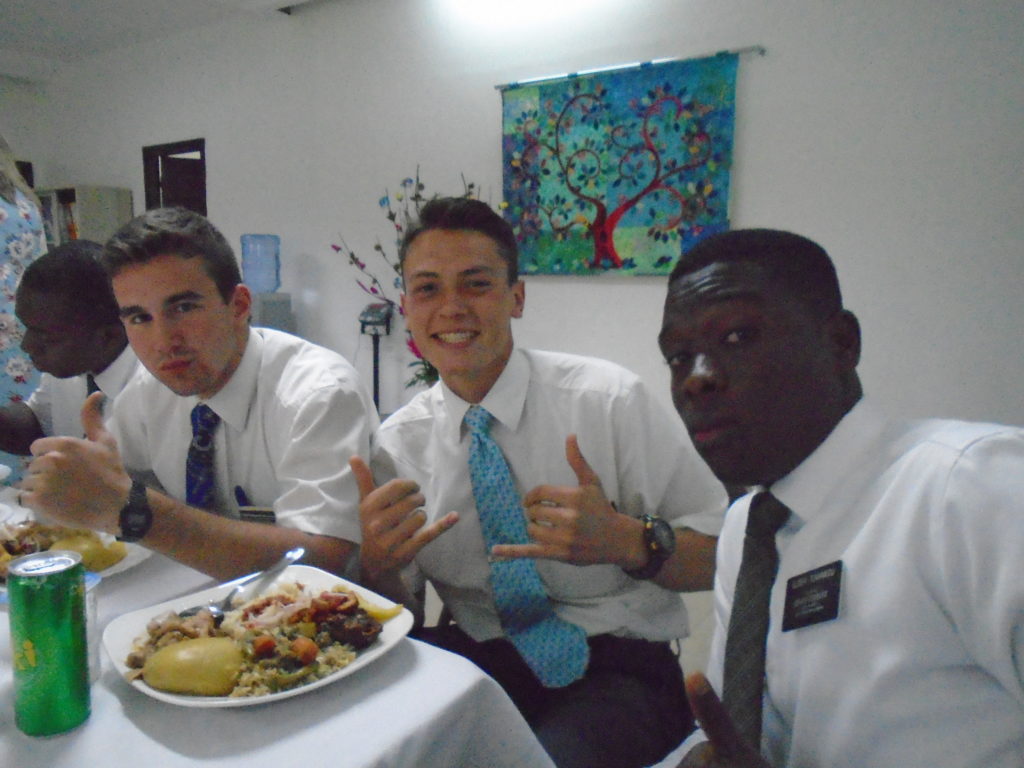 FHE with our new converts family ninssémon, another family who is seriously the best and completely are holding this ward together. Family bolly and then family doué, the ones who have been struggling with their marriage, and then there was this vieux père fr seri who seriously reminds me so much of mom’s dad ron. Seriously the coolest guy!! And then fr dalo the Sunday School president! Such a great night seriously! I have never felt the spirit so strong and seriously that night the lord spoke to these brothers and sisters through me! It was the most incredible experience I’ve ever had on mission! I understand really now how peter felt teaching the disciples of christ with Jesus! Idk it was an amazing experience!!! On top of that fr ninssémon shared a war story which is really his conversion story. It seriously brought tears to my eyes!!!! During the war he was taken hostage and separated from his family for a year and had no communication with them. They had no clue where he was and what had happened and if he was even alive! During this time he was at a camp and was put in a cell that literally was 3ft by 5ft by 6ft or something like that. Just some puny little box that to lay down to sleep at night he had to turn his body and put his legs up on the wall just to get his back flat. It was when i heard that that literally i just wanted to cry. He explained how they treated him super bad and he didn’t have much food or water and then it wasn’t till after that one day they came and said that he was free to go and that he was the only one free to go that they had no charges against him. On the other side back at home his wife everyday would pray for him and never lost hope everyone thought he was gone and dead but she never lost hope in him and now they are back together and happy. Seriously he just started getting emotional at this point just thanking us for the blessing we have been to him that the gospel has changed his life completely. That Sunday his little brother came over right after his confirmation and was trying to get him to go to the bar with him (he was a heavy drinker before his baptism). He followed the spirit and didn’t go and in explaining that seriously the spirit was so strong everyone was so shocked! It was so incredible! He is this huge jacked military guy that turned soft cuz of the gospel! It has been so amazing to see his life completely change !!!!! So yeah super awesome experience and the highlight for sure of the week!!!!! We then had a mangez-vous with family doué chez ma famille gueré on a mangé foufou manioc avec sauce longueur c’était très doux je te dis!!!!!! So yeah super awesome week!!!! Have an awesome week!