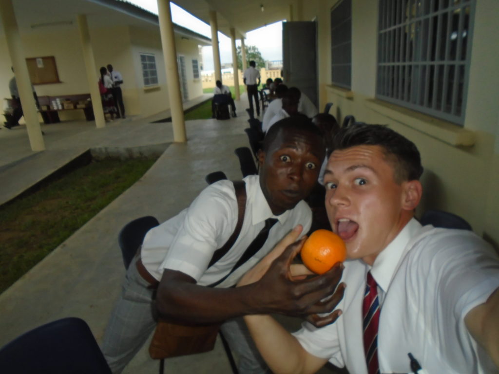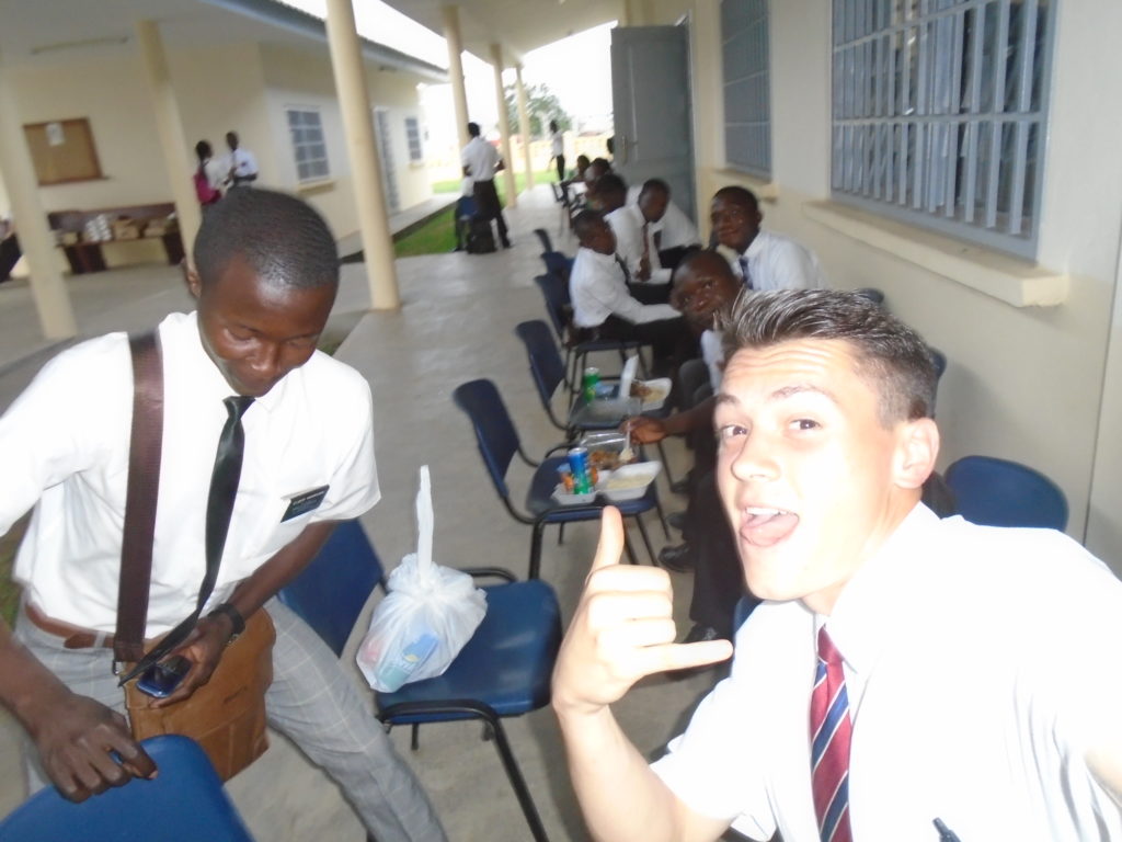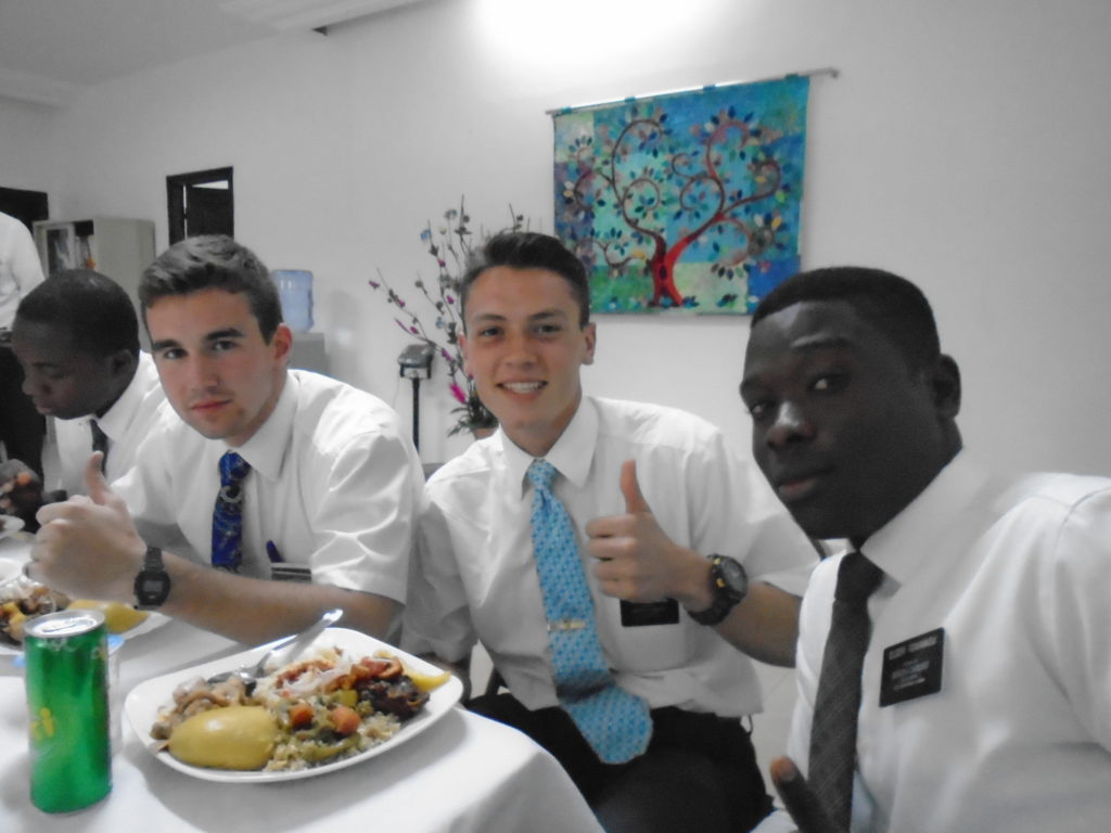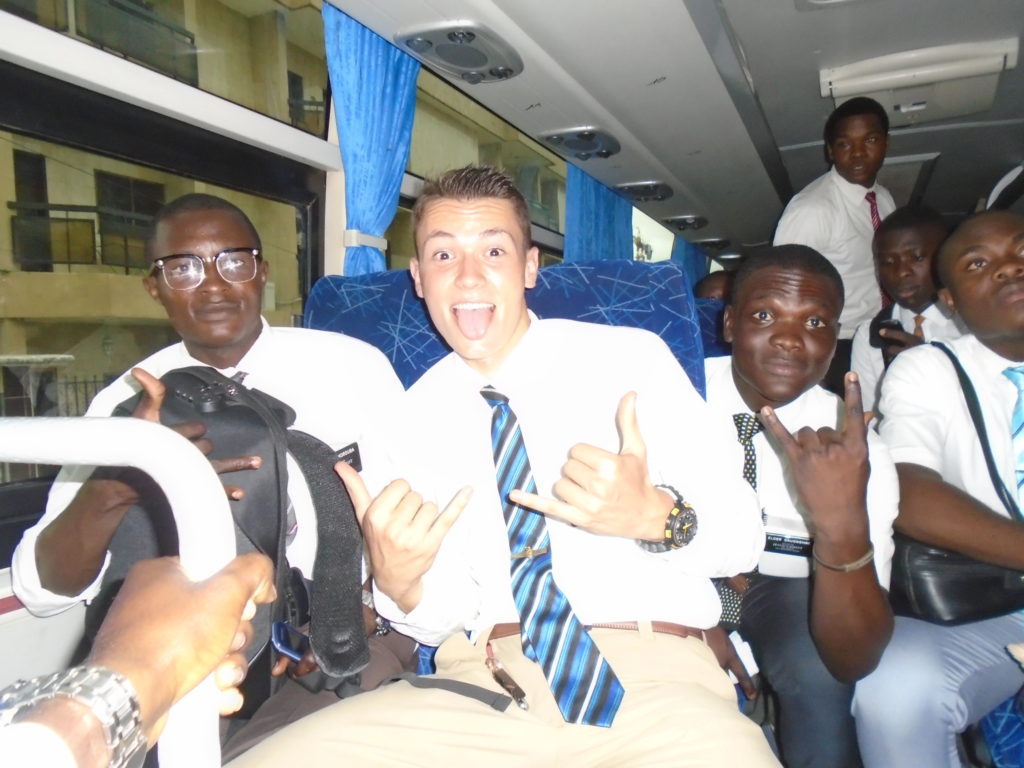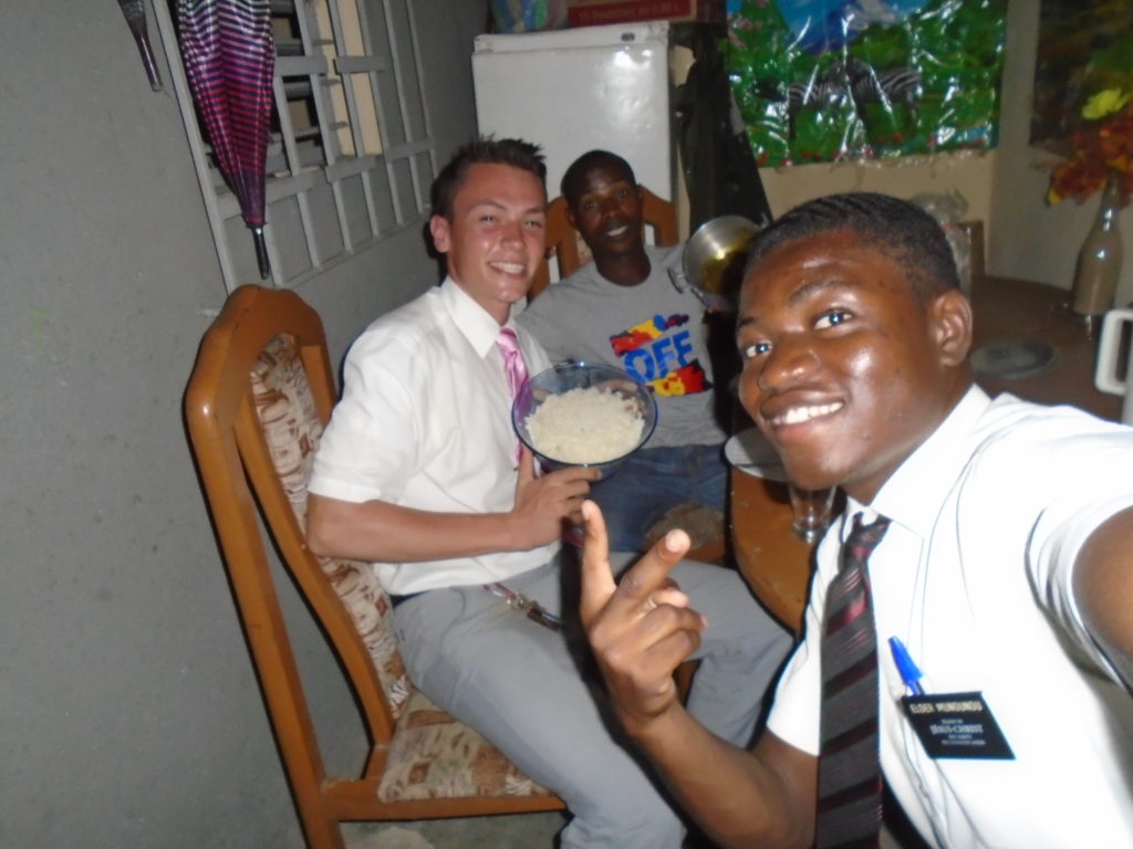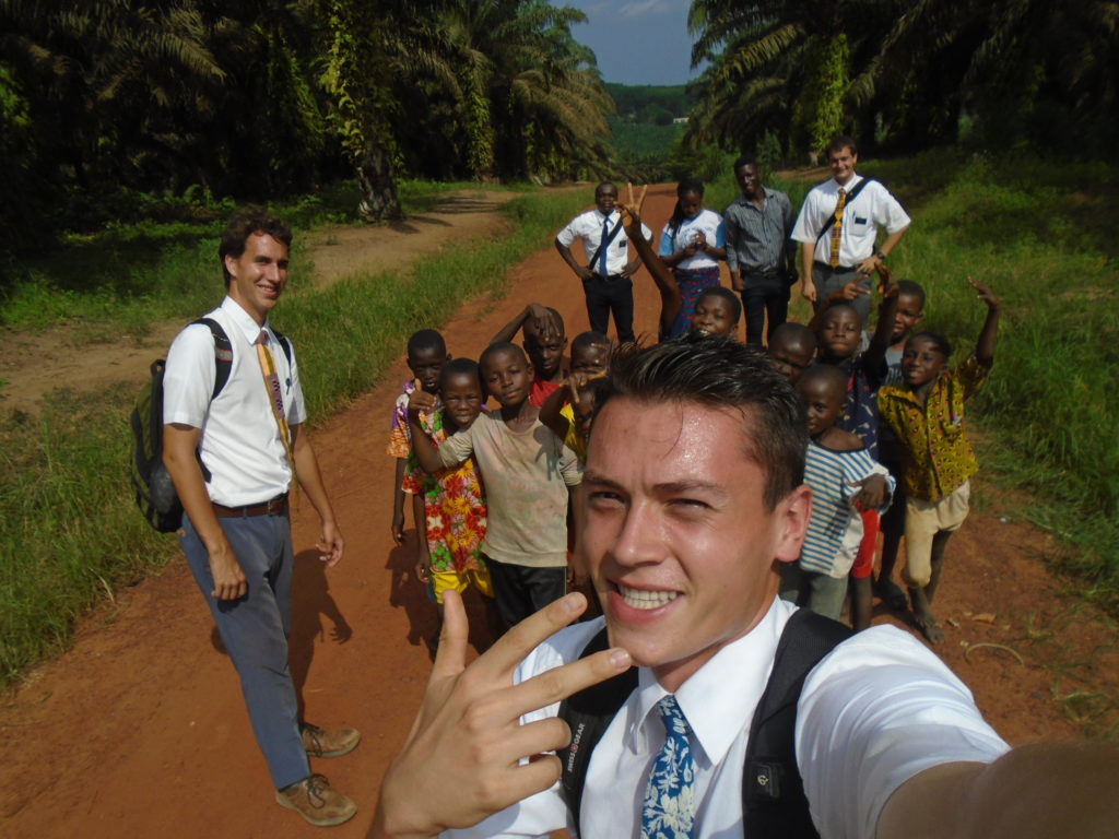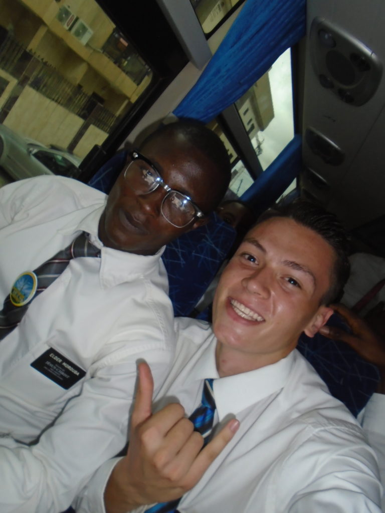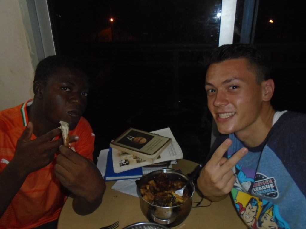 FHE with our new converts family ninssémon, another family who is seriously the best and completely are holding this ward together. Family bolly and then family doué, the ones who have been struggling with their marriage, and then there was this vieux père fr seri who seriously reminds me so much of mom’s dad ron. Seriously the coolest guy!! And then fr dalo the Sunday School president! Such a great night seriously! I have never felt the spirit so strong and seriously that night the lord spoke to these brothers and sisters through me! It was the most incredible experience I’ve ever had on mission! I understand really now how peter felt teaching the disciples of christ with Jesus! Idk it was an amazing experience!!! On top of that fr ninssémon shared a war story which is really his conversion story. It seriously brought tears to my eyes!!!! During the war he was taken hostage and separated from his family for a year and had no communication with them. They had no clue where he was and what had happened and if he was even alive! During this time he was at a camp and was put in a cell that literally was 3ft by 5ft by 6ft or something like that. Just some puny little box that to lay down to sleep at night he had to turn his body and put his legs up on the wall just to get his back flat. It was when i heard that that literally i just wanted to cry. He explained how they treated him super bad and he didn’t have much food or water and then it wasn’t till after that one day they came and said that he was free to go and that he was the only one free to go that they had no charges against him. On the other side back at home his wife everyday would pray for him and never lost hope everyone thought he was gone and dead but she never lost hope in him and now they are back together and happy. Seriously he just started getting emotional at this point just thanking us for the blessing we have been to him that the gospel has changed his life completely. That Sunday his little brother came over right after his confirmation and was trying to get him to go to the bar with him (he was a heavy drinker before his baptism). He followed the spirit and didn’t go and in explaining that seriously the spirit was so strong everyone was so shocked! It was so incredible! He is this huge jacked military guy that turned soft cuz of the gospel! It has been so amazing to see his life completely change !!!!! So yeah super awesome experience and the highlight for sure of the week!!!!! We then had a mangez-vous with family doué chez ma famille gueré on a mangé foufou manioc avec sauce longueur c’était très doux je te dis!!!!!! So yeah super awesome week!!!! Have an awesome week!