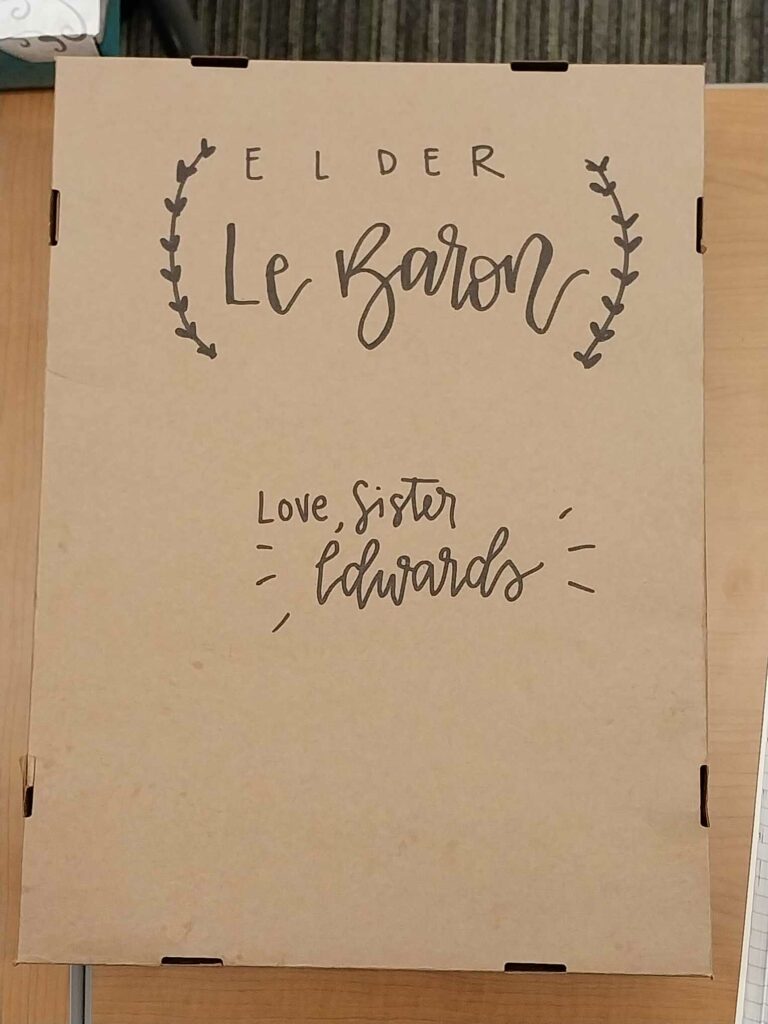 This last week was crazy! I wasn’t able to write an email last week since I got sick and have been trying to get over this cold! I am doing good now but it’s just lingering! But anyways the highlights of this week were: Devotional on Tuesday with Elder and Sister Homer of the Seventy. It was so good and talked about the importance of our Missionary Purpose! It was also Halloween and we sang “Master the Tempest is Raging” and it was an arrangement that was kinda Halloweeny! On Wednesday I got to spend the day with my brother Ben and it was so amazing! I had to get my retainer fixed and I was able to make an appointment with my orthodontist in South Jordan. To get there the MTC likes it when family can pick you up so they don’t have to plan on buses picking me up so I was able to spend the day with Ben and it was such a miracle! He got me around 9am and we were with each other till 12:30pm so it was such a blessing to have family that I could be with! We then got to go to Café Rio and it was amazing to have good food that wasn’t the MTC food! Then we were able to just talk with each other and I was able to just have someone that I could talk to! He then gave me a beautiful blessing and it brought so much peace and comfort to me! Then Wednesday night we had to say goodbye to the Tahitian missionaries and we were able to learn a Tahitian Farwell song that we sang for them and it was so cool! Then they sang to us and it was so sad but so exciting that they are able to be there! It’s crazy to think that the next time I see them will be in Tahiti!! Also learning the song made me so excited to get to Tahiti and learn Tahitian! Then some things from last week were: We had a devotional from Neil L. Anderson and his wife and it was incredible having an apostle for our devotional! He taught about Think Celestial and how important that talk was from Russel M. Nelson and the importance of hearing and understanding the language of the spirit through the Holy Ghost! I also was called as Zone Leader with my companion Elder Warnock! So it’s a really amazing opportunity to be in leadership so soon in the mission and having those responsibilities but it’s amazing! We get to welcome the new missionaries and also help with preparing for Sunday sacrament meetings! Also was able to bear my testimony in French since we learned how and it was such a cool experience having a mini testimony meeting with our district all in French! And that’s about it for these last two weeks! So yeah everything’s been good and just learning how to understand the language of the spirit and how it speaks to me and having patience with myself and others and charity! But yeah continuing to do my best and enjoy every moment of being here! It’s already flying by! Can’t believe I only have 5 more P-Day’s here! Beaucoup d’amour!💙 -Elder LeBaron