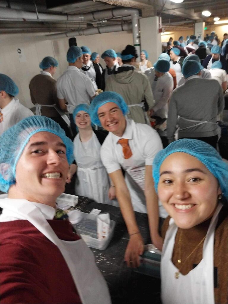 Thursday→HAPPY THANKSGIVING!!! This was such a memorable day! First the day started out with a devotional with Elder Rasband and his daughter. It talked about how he went to Israel and how we walk with Christ. Then after the devotional we had a Thanksgiving lunch and I was able to talk with my family and it was amazing! We then prepared our sack dinners since we had a service project that we were doing that night and to help the staff be able to have Thanksgiving with their families! Then we went and watched Ephraim’s Rescue while the other group of missionaries did the service project. It was so amazing to watch that movie and I loved it so much! It was put into perspective of what they really did for us and what really matters in this life which is Following Jesus Christ and giving our lives to Him. Then after the movie we went to the service project which was making meals for other people in need through the company Hunger Fight! It was oatmeal packets that we made and we made it so 409,200ish people would have meals! It was such an amazing experience and was the perfect thing to be doing on Thanksgiving! Then to end the night we got to hear a special musical devotional with John Schmit and it was absolutely incredible! It was so amazing that he came and was able to show us his extraordinary gift of playing the piano! Then after the devotional they turned all the Christmas lights on at the MTC and played Christmas music and we got donuts! It was a perfect day and is a day I will never forget!