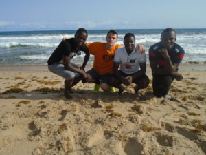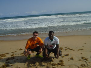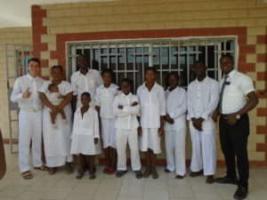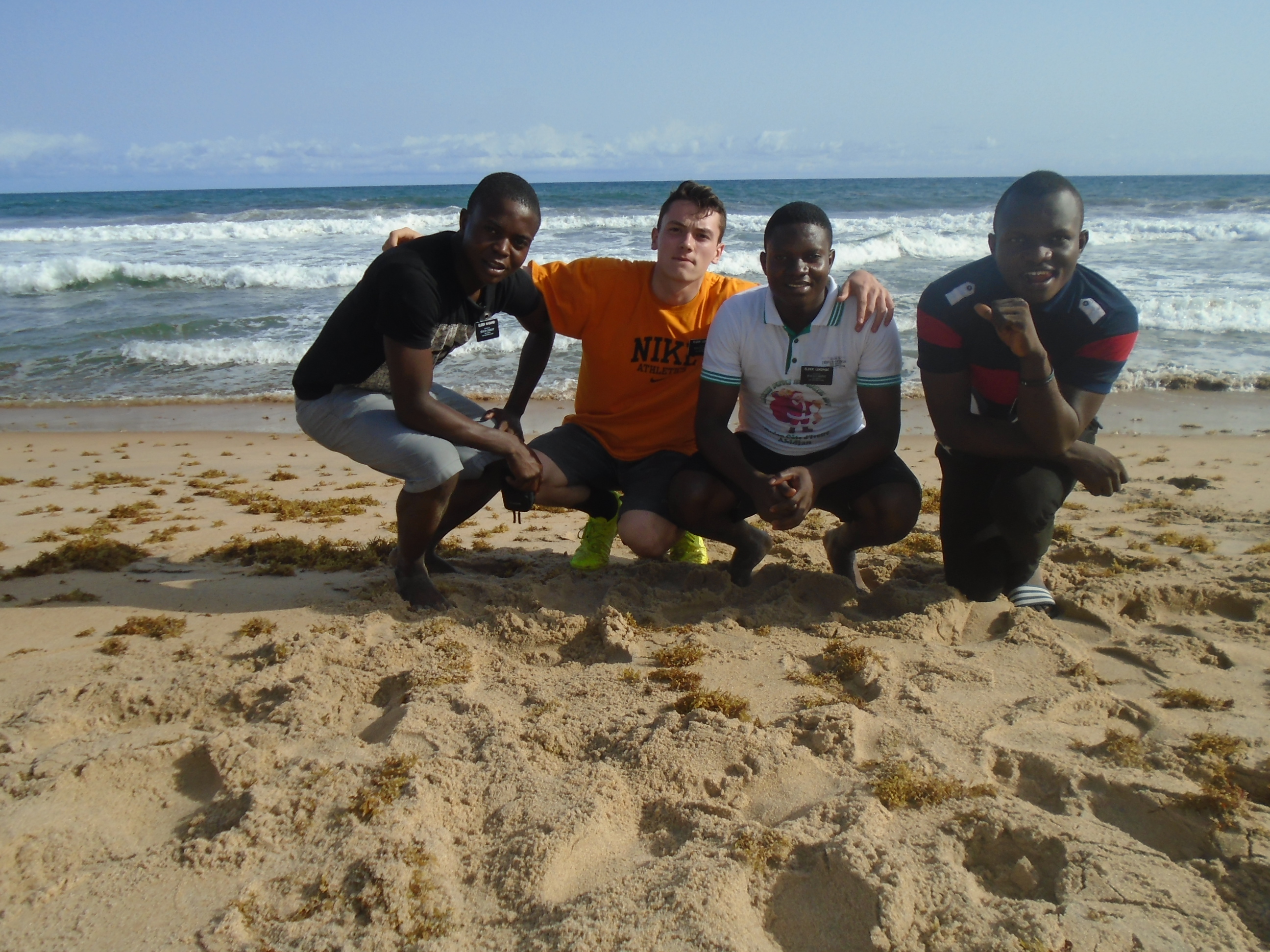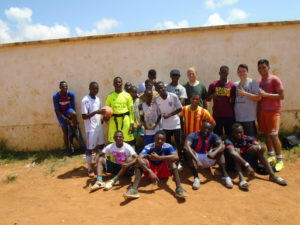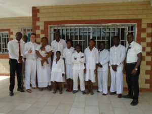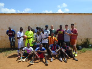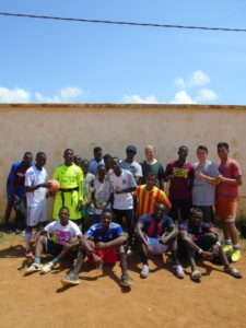 I finally got to send my recordings!!  I’ve literally been praying all week it would work!  My prayers were answered!  (for those reading this go back the past few weeks to listen to Tyler’s recordings) Also, the pictures are of the zone after we played soccer on P-day!  Life is great here!!!  I think I may have worms though cuz I’ve been having diarrhea and I get pains in my stomach sometimes when I eat again.  🙁  Good news my ingrown toenails are gone, so that’s good!!  I need to call Mama Benine tonight.     I feel your prayers, and they’re working!!!  It’s just not that sanitary here…Josh would hate it.  Haha!  French is good. Its starting to come a lot better.   I’ll have days where like people don’t understand me and then others when they understand me perfect hahah.  It’s frustrating, but its all good it works out!!  My comp is a stud!!!  I convinced my comp to go to the better cyber this week so I could send these recordings.  I just paid for our transport to come here lol!  When we went and got our money today for the month this guy was like freaking out at us and almost hit Elder Ayama it was nuts!!!   The Lord was on our side though and we were totally protected!  🙂  So we have been focusing a lot on Family Brou and finding more people to teach for this next month.   We don’t have any steady investigators yet.  Fr Siee won’t come to church and Fr Chris didn’t come either so we are gonna go talk with them this week and some others!