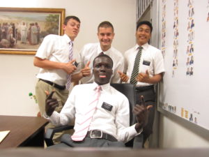Man this week went by so fast! It was good, but it sure went fast. The upload is taking forever. I sure hope you get to see my pics. They’re great! It stopped raining so the weather is good now. So I’m letting my hair grow out again. I miss my hair. Haha! We also didn’t get our baptism because his dad wouldn’t let him get baptized cuz of his comportements. Not sure what that means in English. Haha. I just looked it up. It means behavior. His behavior was bad so he couldn’t get baptized. 🙁 Aunt Kersten sent me a great email with an awesome talk! It was great! I’m glad you like me speaking Noushi. Haha It’s like pigeon French, but if I speak it it’ll screw up my French. I love speaking French!! I will speak more Noushi after a year cuz i gotta master French first or at least do my best. I can too master it lolol Its soooo tough!!! Wait until you see my Jimmer jersey!! My comp saw another one so he went to buy it today so now we match hahahah its dope!!!! It was just in some hut this dude had jerseys hung up and one was Jimmer’s! So cool huh! All the way in Africa! Haha My comp is in love with BYU. He watched like all their games. I’m going to burger king for my birthday and Sorensen is gonna meet us there!! I’m so stoked!!! Best birthday gift ever!! I’m trying to get our whole zone to go hahaha! I’m gonna just use my card and load up on food for my birthday! Hope that’s ok! I also see a bunch of Dimarious Thomas jerseys here and I’m just like man I miss that sucker! hahahaha Elder Sorensen is gonna apply to BYU, and I bet he will get accepted way easy. I also talked about going to UVU with him so idk or provo. Honestly I don’t even know all I know is him and I are going to college together hahahahahaha! I absolutely love him! He’s become my best friend! I love these missionaries I serve with…we’re all brothers! Its really hard where we are right now because our area is an hour away from our apartment. We talk to as many people as we can!!! We had a super cool conversation with our cab driver just yesterday, and I just remembered it was super cool! We all wanted to do something fun today, but the ZLs called this morning and asked us all to clean our apartments. Ours is already immaculate so who knows what we’ll end up doing. Oh well, I came on my mission to work not play. haha! Oh I keep forgetting to tell you that I still suck at using my mosquito net because I got an allergic reaction to the chemicals in it so I haven’t been using it. But I am a master rice cooker now hahahahaha! I just wish we had more investigators. We’re working hard but we don’t have many. Pray we find more! Okay well I gotta go because time is up. Finished sooner than I thought!!! Love you guys!!!! Have a great week! I love you soooo much!!