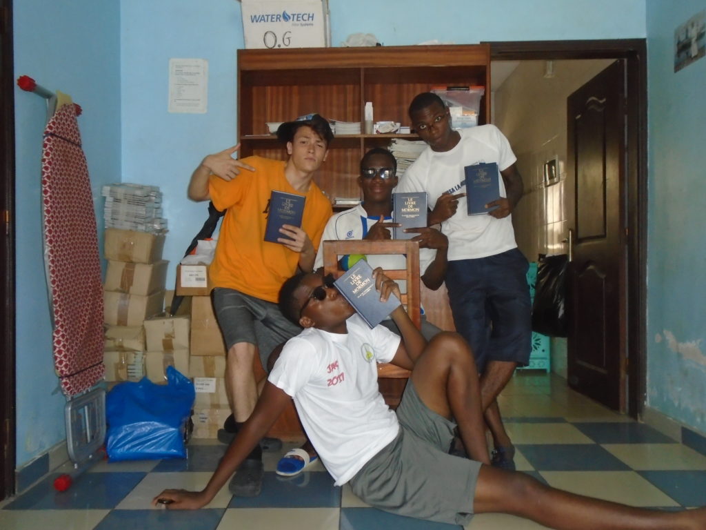 I’m doing great!!! I’m so excited because Elder Christofferson comes the 31st so it’s not for a few weeks! I’m so excited for it man!!!!!! It is gonna be so awesome!!!! We are going to be combined with the other mission so I will see all my buddies!!!! I’m stoked!!! The week was great we killed it this last week taught over 20 lessons and found like 9 new investigators it was so tiring but so awesome and so rewarding!!! We also set 3 baptismal dates so that is super exciting they just gotta keep coming to church. One of them is family bokés daughter and the other is seriously the cutest 9 yr old she is so brilliant. Like she literally understands our message better than like half our investigators I’ve ever had hahahaha like just golden investigators left and right man!!!!! and it’s all cuz of the work we have been putting forth. You didn’t know this but for these past few months I have kept my music and just been listening to it every once in a while but monday I just took the decision to erase it all and then we had this killer week and it was just so amazing to see that even this whole time I haven’t been that obedient the lord was always there to bless me for the small efforts I was doing! Like seriously I can’t thank our father in heaven more and just seeing these blessings continue to fall from heaven and I know it is because of my obedience!!!! It’s so incredible!!!!! but yeah don’t worry man we are gonna do the cut this week and just focus on finding even more and the ones we just found we are gonna keep going with them and we will cut them if they don’t progress it is just a little system hahahah!!! I saw Alban’s wife this last week she’s sooo nice!!! I will have dinner at her place soon idkl when she said she would plan it and call me! Also, I got those shoes from Alban!!! They rock!!!!! Wore them to sports this morning, and it was perfect cuz I got terrible blisters two weeks ago!!!!! I can’t believe that I was the first one here to africa and now all these people are coming it will be so cool to connect with them all after they finish!!!! Pray that we can get fr eric fr ignace and sr charlotte to come to church so they can be baptised too!!!! Also that we can get sr therèse to stop sleeping with her boy friend so she can get baptised!!! Well that’s it!! Have a great week!! Love you soooo much!!!!!!